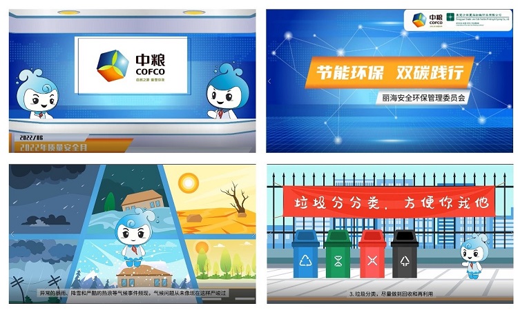 沙田丽海公司利用动画短片、卡通人物立牌等方式将节能环保知识生动、有趣、广泛传播到各层级员工中,增强全员节能环保意识,让绿色低碳理念深入人心。