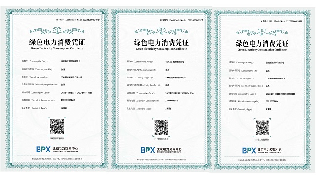 近日,中国纺织下属江阴福汇公司获得北京电力交易中心颁发的绿色电力消费凭证。